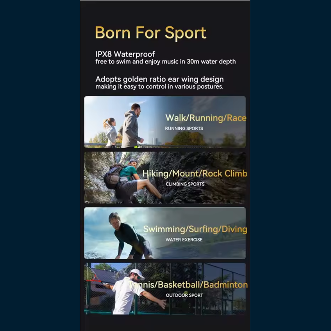 - ✅ Open-Ear Safety & Awareness – Stay alert while enjoying your music with a buds-free, bone conduction design perfect for running, cycling, and swimming.