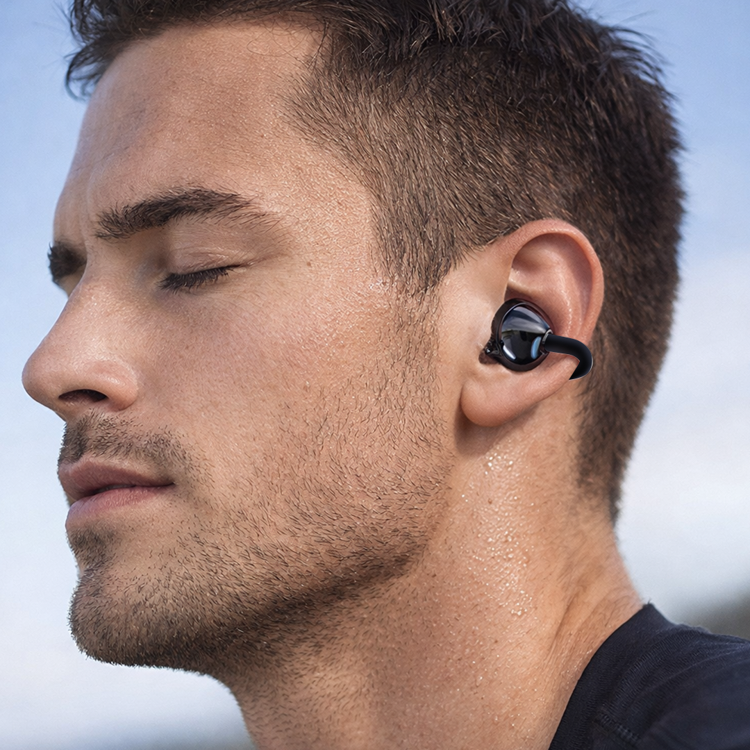 Experience true freedom with our open-ear Bluetooth clip-on headphones. Unlike traditional earbuds, these sit comfortably outside your ear canal, giving you a fresh, breathable way to enjoy your favourite music, podcasts, or calls - without blocking out the world around you.
