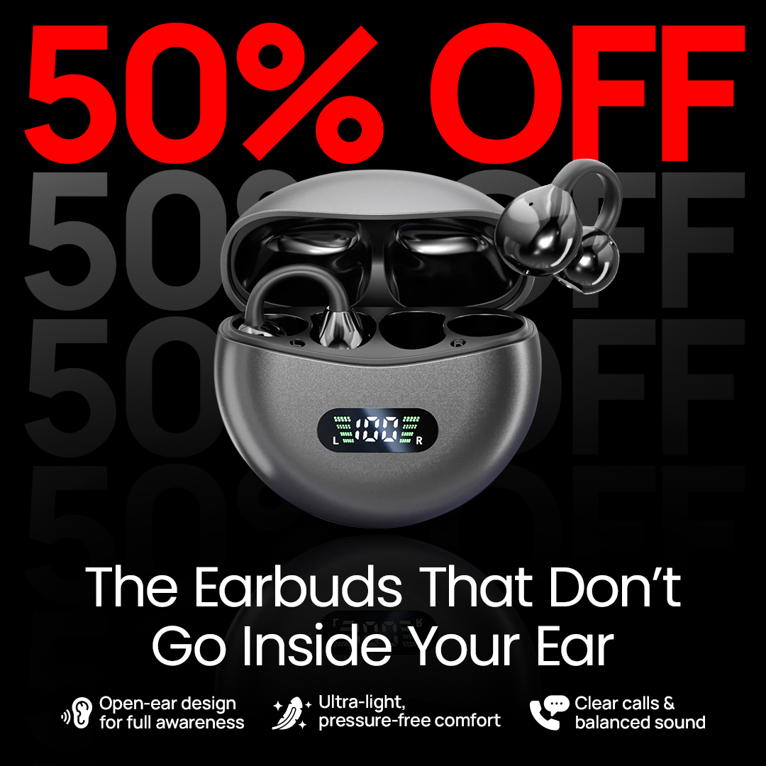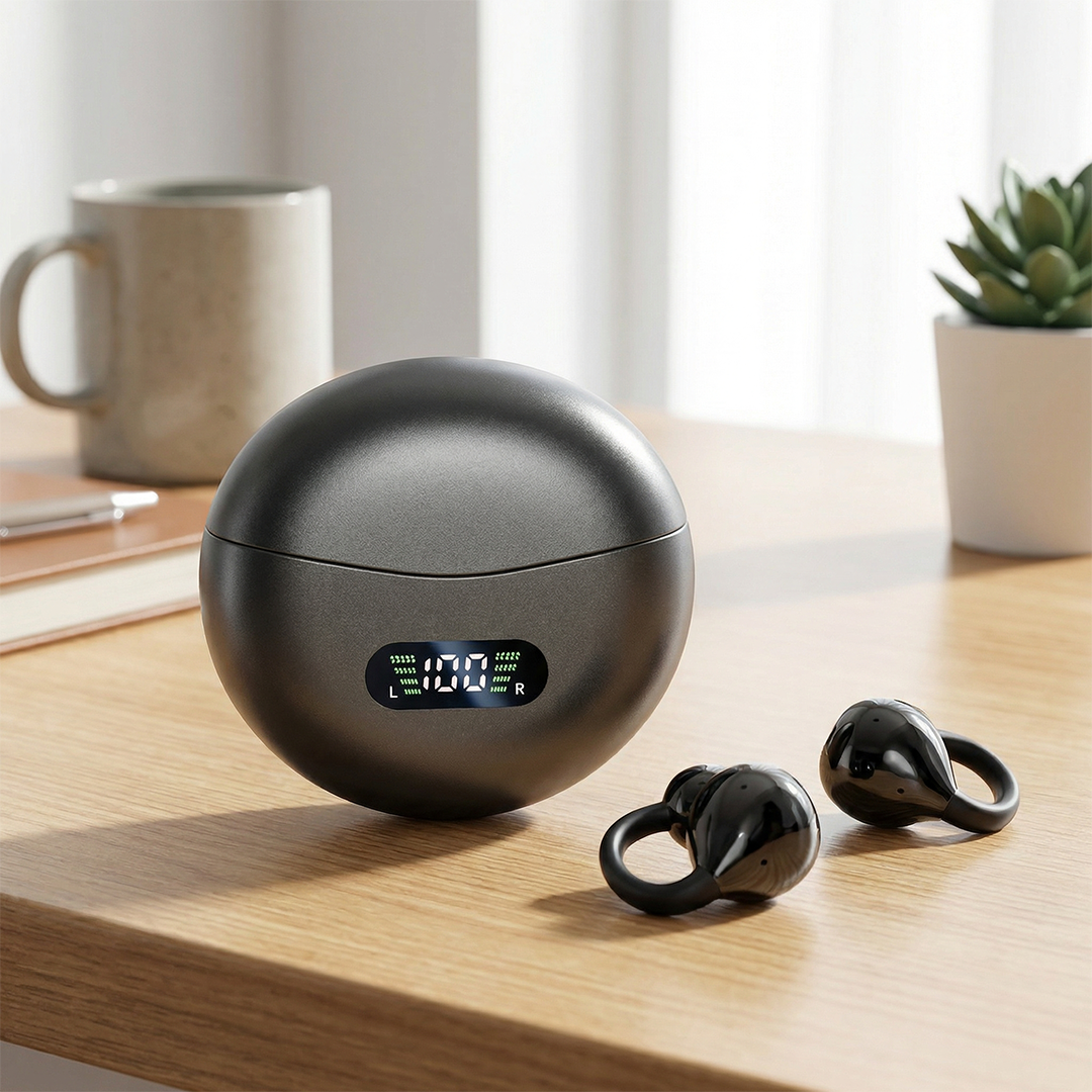🎧 All-Day Comfort – Ultra-lightweight earclips with an ergonomic, pressure-free fit. Designed to sit securely without going inside the ear, staying comfortable even during long wear.